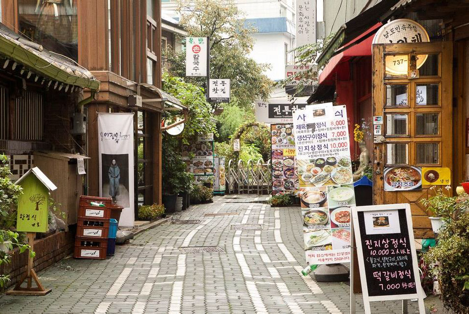 Insadong is a touristic area north of Seoul, in the Anguk station. It is a historic neighborhood heavily focused around craftsmanship and Korean art. In the Joseon era, it was the shelter of Seoul painters. Numerous little shops selling traditional, and cultural, objects abound alongside the 700 m main street of Insadong. It is a treasure-trove of Hanboks (traditional Korean), Hanjis (Korean paper), as well as assorted teas and other typical Korean souvenirs. Cars aren't allowed on weekends, which means one can stroll casually along the high street.